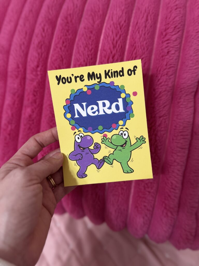 My kids are big Nerds Candy fans. They decided they wanted to attach Nerds to their Valentine’s cards this year, but we couldn’t find any Valentine’s Day cards they actually liked.