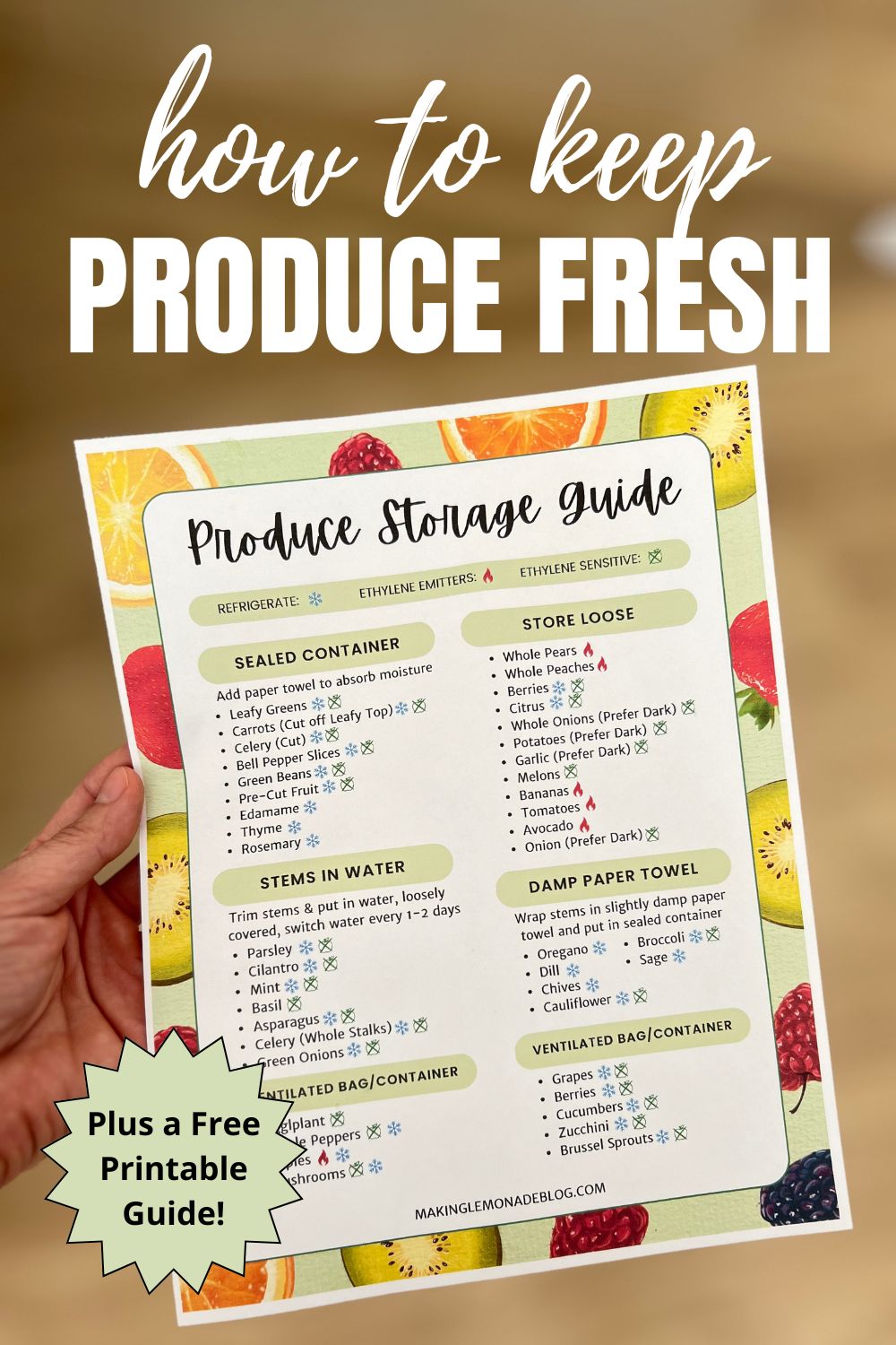 How to Keep Produce Fresh Longer + Free Printable Storage Guide